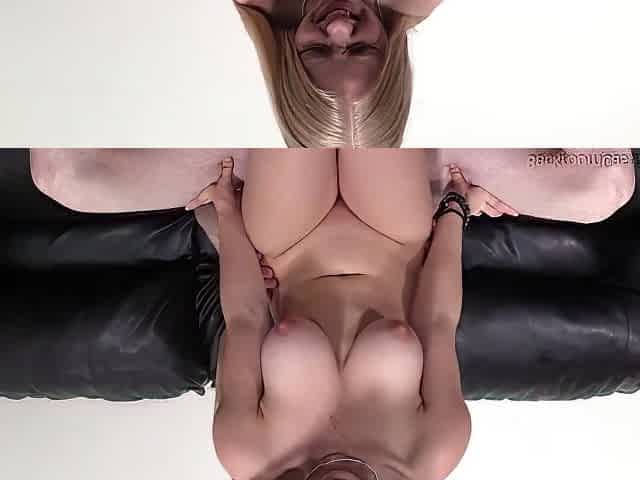 "Randy cock sucking blond chick gets jizzed after riding hard dick on the couch"