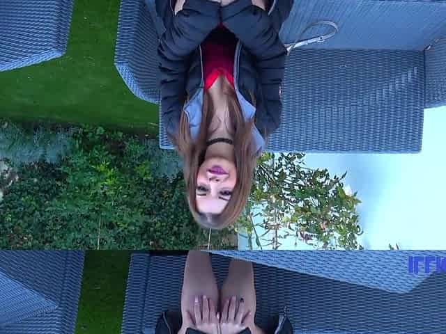 Two Lesbian Brunettes Having Sex In Couch Outdoor With A Sex Toy