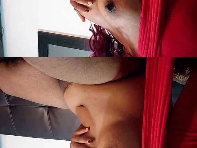 Black gal masturbates at night whilst her sons are on couch and gets an climax with vagina juice
