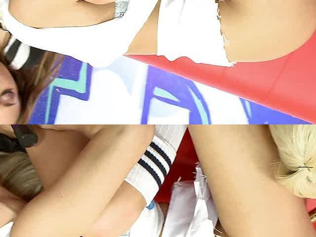 Brunette and blonde teens have hot lesbian sex on the couch