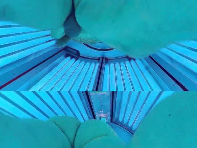 Tanning salon. Caught on camera Dancing in tanning couch