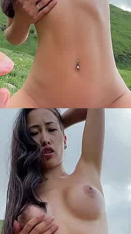 Hiking in the mountains, Asian teen Xia Qing Zi meets a stunning cougar and they dive into wild sex
