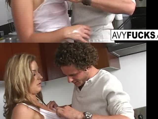 Golden-haired Avy Scott teases her chap in advance of getting creampied