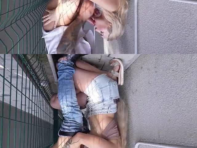Street Pickup Golden-haired Got Facial Leaking By Random Wall