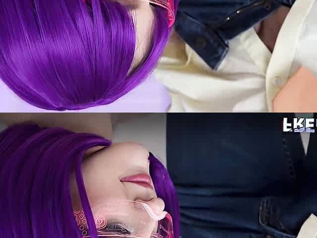 Purple-haired hottie Lucy Lotus screwed in the sideways pose