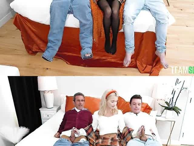 Slim and innocent blonde Emma Rosie impaled by two cocks