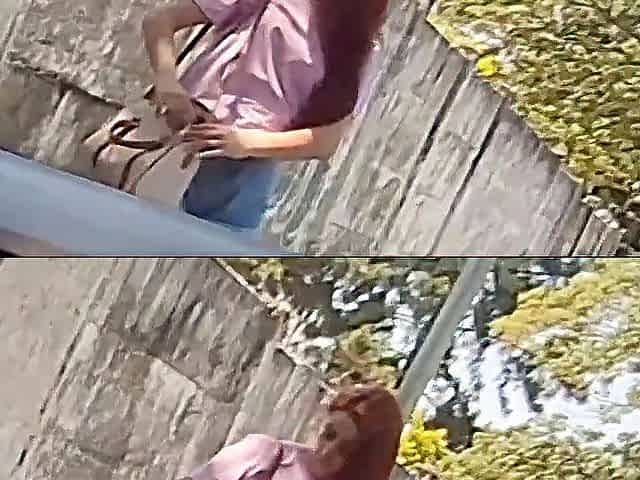 enano va y ayuda a chica inocente que se cae sobándole el coño con su polla
