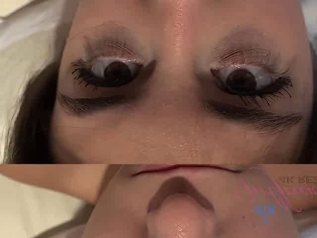 Marvelous blue eyes and a throat full of cum