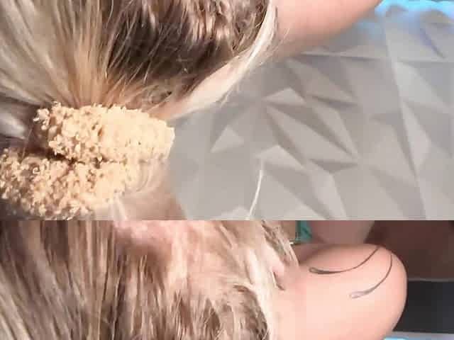 Blonde bombshell gives a deepthroat blowjob before getting pounded