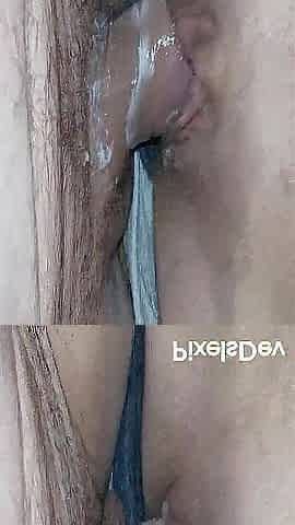 Masturbation. Abundant secretion of lubricant from a taut cunt