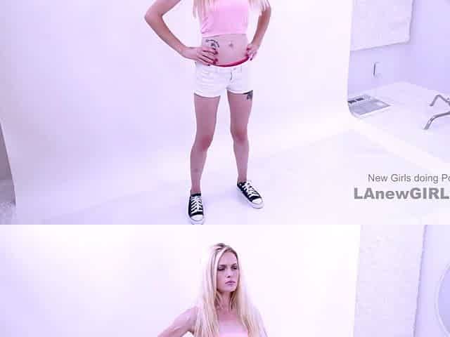 Pretty blond gets tight cunt creampied in studio