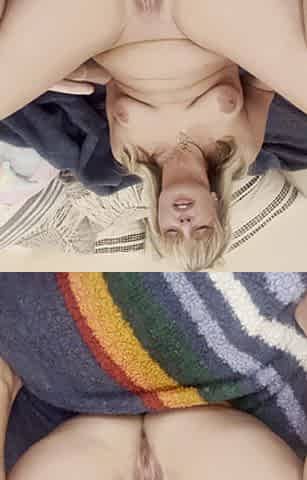 Breasty American golden-haired BLAKE BLOSSOM sucks my weenie and swallows a creamy load with her vagina!