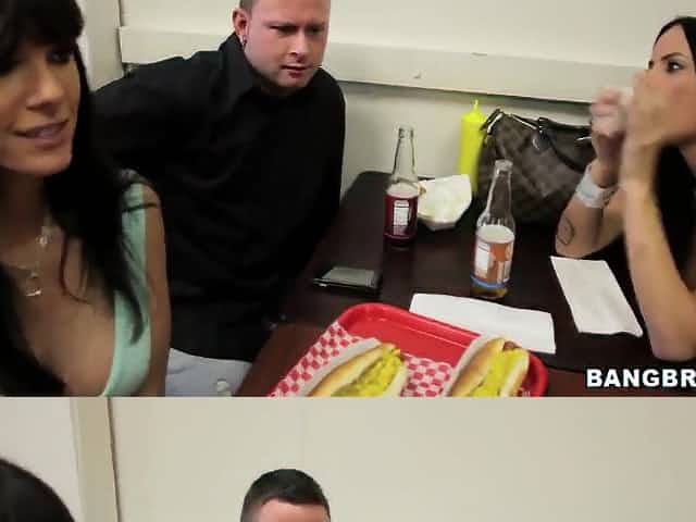A hot dog heaven with three exciting babes and one lucky guy