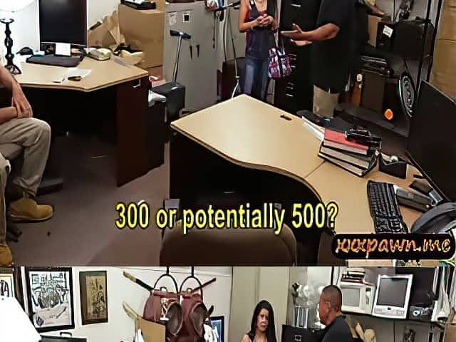 Cuban and Busty babe gets pawned inside her pussy in the pawn shop office