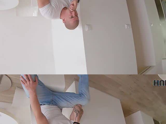 Kitchen sex between a stranger and Amalia Davis while hubby watches