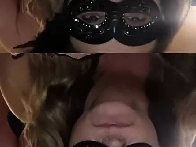 Tape covers cuckold's eyes as he listens to Candy Monroe have fun with BBC