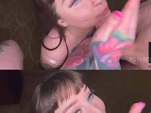 Hot blonde Ira sucking cock of her boyfriend's friend