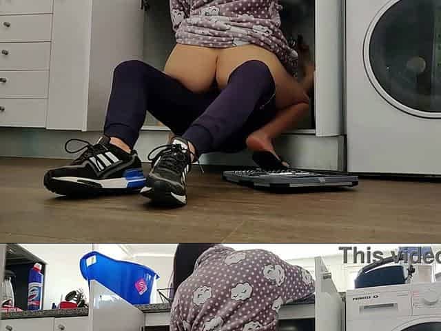 Sexually excited wife bangs handyman beneath the sink
