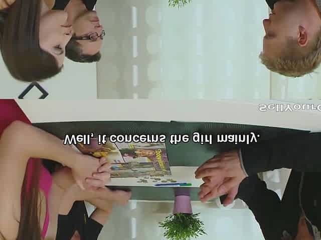 Married woman swallows the delivery mans dick and sticks her ass up to get fucked while her husband watches