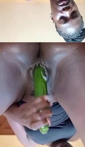 Fuck with Cucumber Inside Pussy