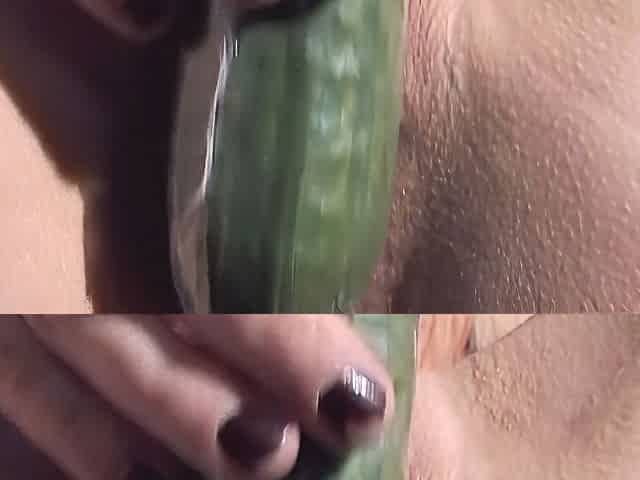 Young Beauty Masturbating Tight Pussy With Huge Cucumber And Cums Hard