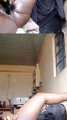 "Cute teen using a cucumber on her clit"
