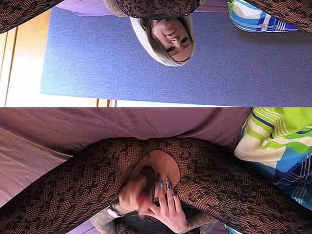 POV blowjob footjob handjob with Karla Kush eating cum