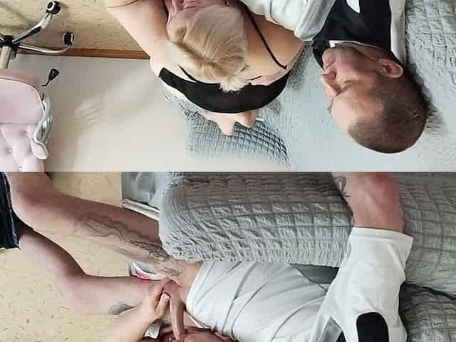Blonde Feet in Face Handjob & Footjob with Long Toenails - Cum on Soles