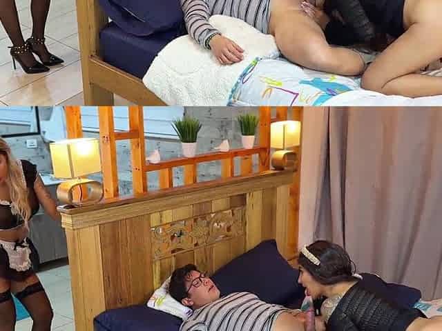 Fortunate man! This chab drilled his girlfriend and his maid in the same room!