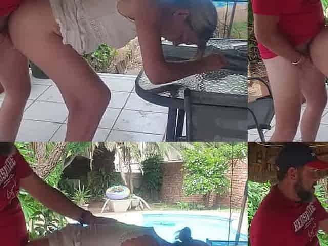 Doggystyle standing mature blonde pull out and cum drip 2 views