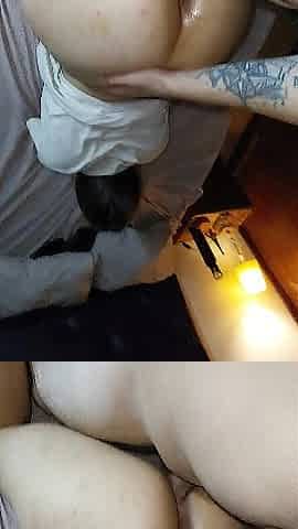 Mi esposa culona se pone cachonda y cabalga mi polla hasta que me corro dentro. Creampie casero