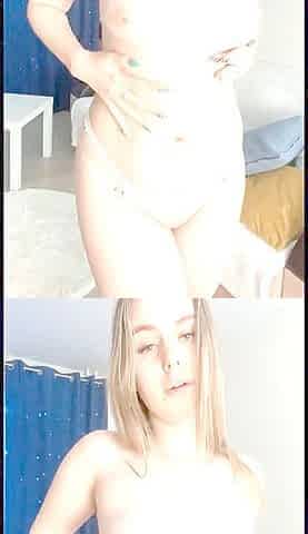 Naughty ash-blonde camgirl Solar Kate squirts and cums for strangers online
