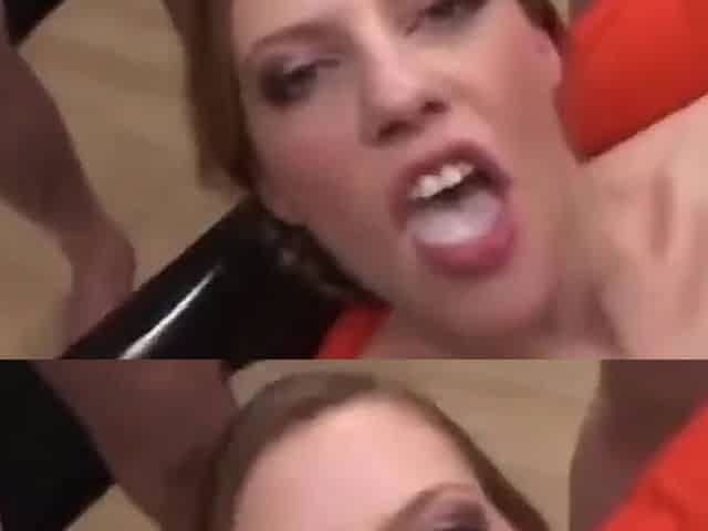 "Taylor Rain face covered in cum from multiple dicks"