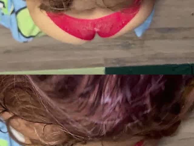 FAT FLOPPY TITS covered in cum and oil - Busty Redhead Tit