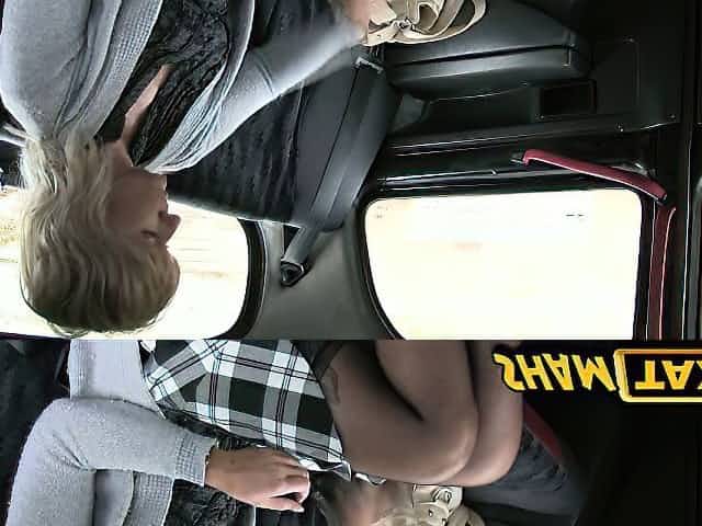 Blonde milf gets her hairy pussy covered in cum during taxi