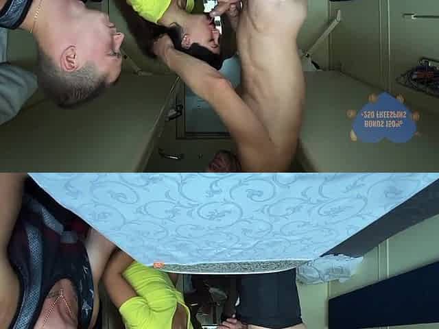 Cuckold lost his girlfriend at cards and watches her boyfrend passenger screw her on the teach