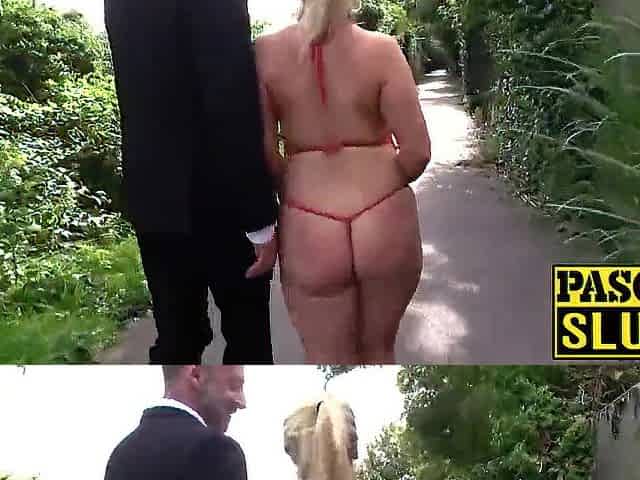 Breasty British subslut Candice Banks hammered and eats cum
