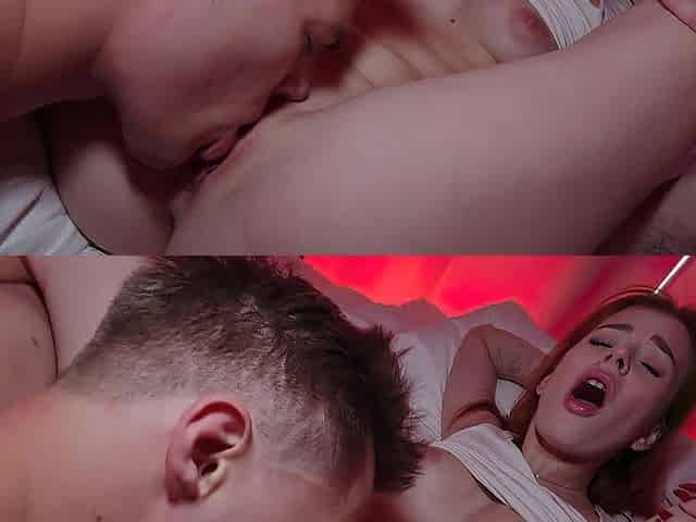 Cum eating redhead amateur babe 3some fucked in FFM action