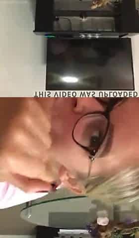 Hawt golden-haired with glasses sucks ramrod and eats cum
