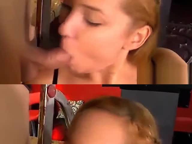 Dirty blonde gets both holes fucked before eating cum