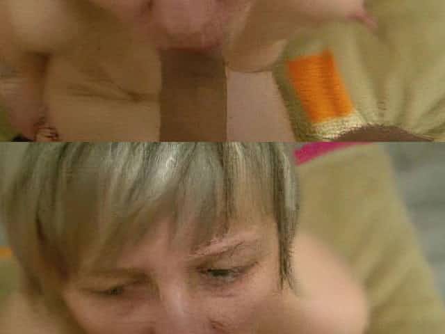 Chubby blonde wife sucking dick and eating all the cum