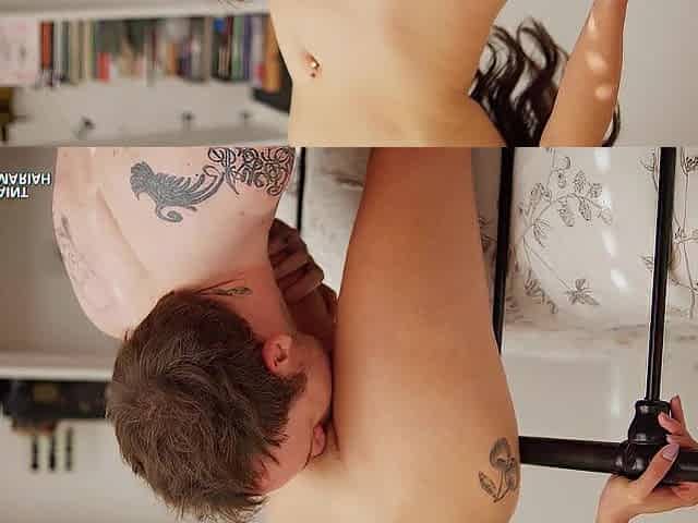 Chyna Whyte and Rich Dollars eating Twat Oriental Latin chick Puerto Rican Cuban petite melons tattoos