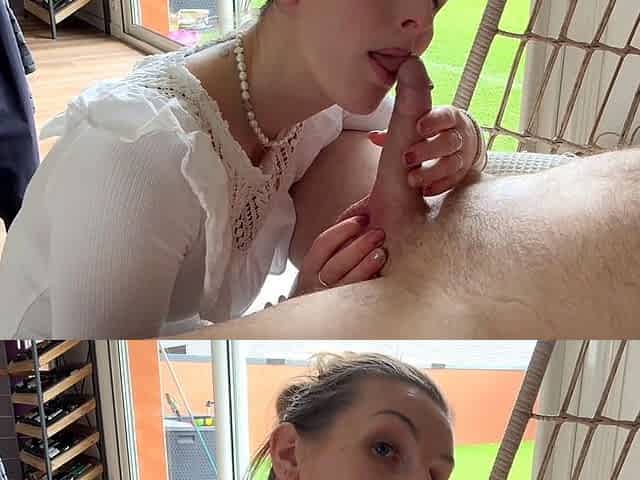 Amateur blonde gives a wild POV blowjob with some serious ball action