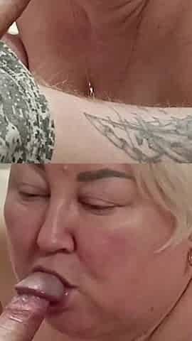 A voluptuous golden-haired receives oral job stimulation and has her lips filled with jizz.