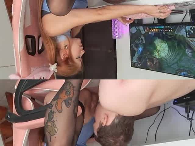 Gamer Girl Playing League of Legends While She's Fucked Doggystyle