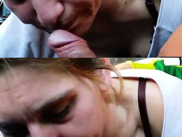 Hiking BJ: her tiny mouth can't contain the flood of sperm