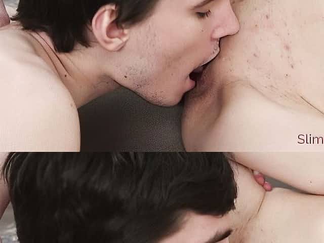 Nude blonde fucked and jizzed in crazy DP