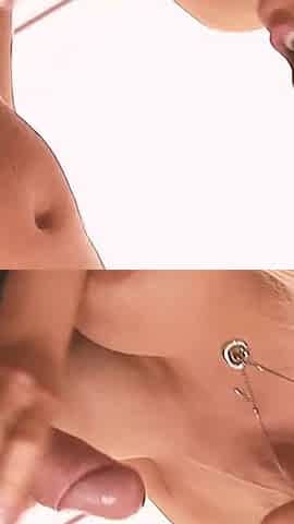 Ana Slo keeps eye contact while giving you an intense POV blowjob