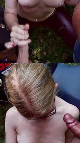 Jerking off a Dick, Fucking a Neighbor in Her Mouth and Cumming on Her Huge Tits