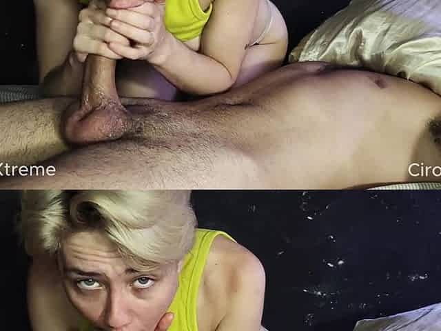 After work, the stepsister relieved stress by sucking all the semen without the weenie Just listen to